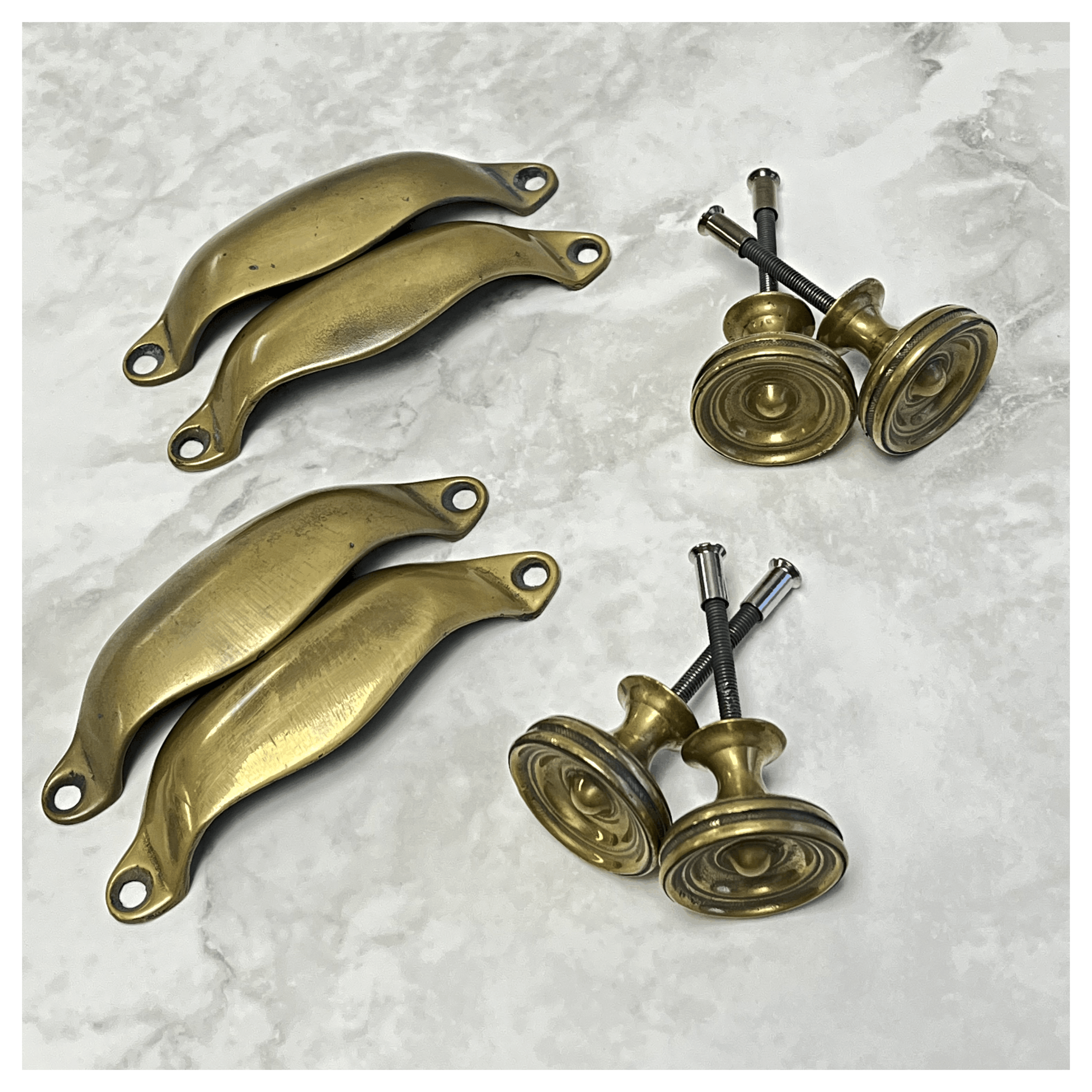 A carefully chosen bundle of handcrafted solid brass fittings, ideal for elevating pantry cupboards and kitchen drawers with classic charm. Boxed and ready to ship.