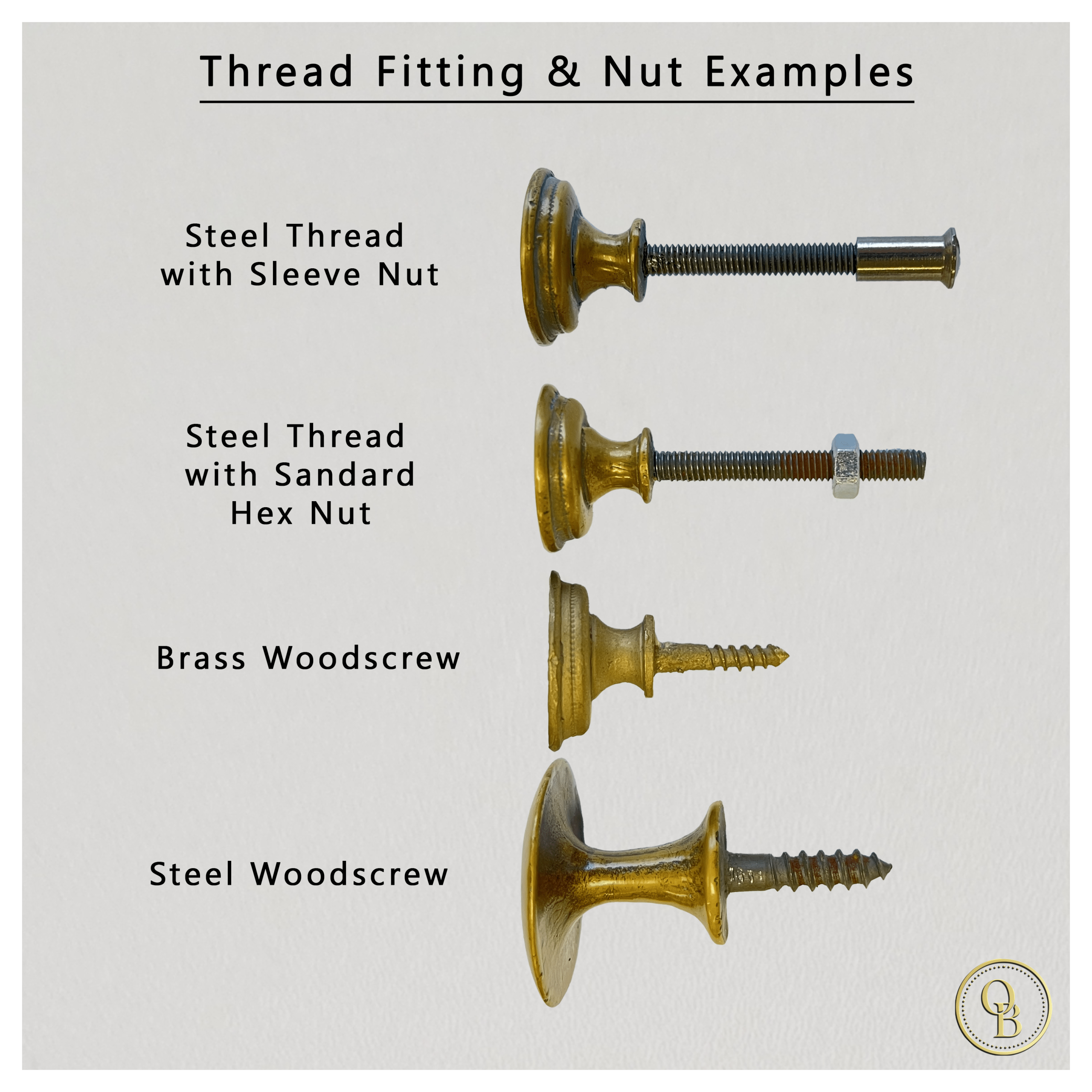 This current product is supplied with a brass Woodscrew for fitting. Thread adaptation to a steel Woodscrew or Steel Thread is available on this item